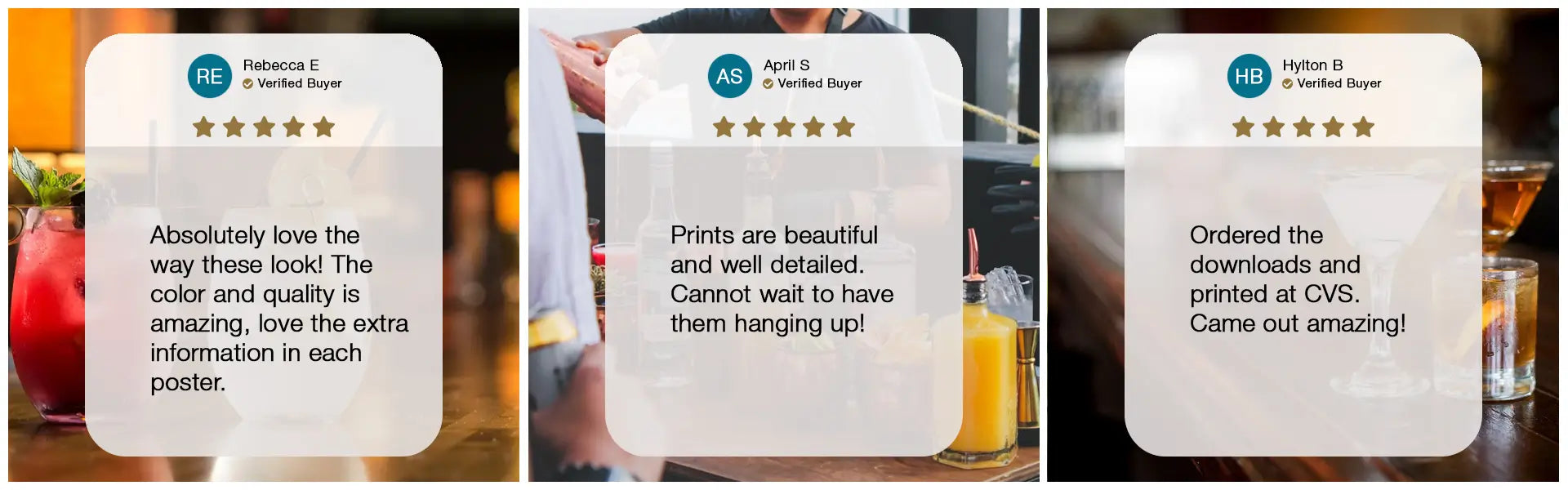 Bold, beautifully illustrated cocktail posters that bring the bar vibes home. Without the last call.
