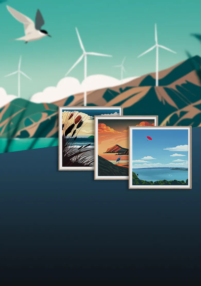 A curated collection of original NZ art prints inspired by the landscapes, wildlife, and places of Aotearoa.