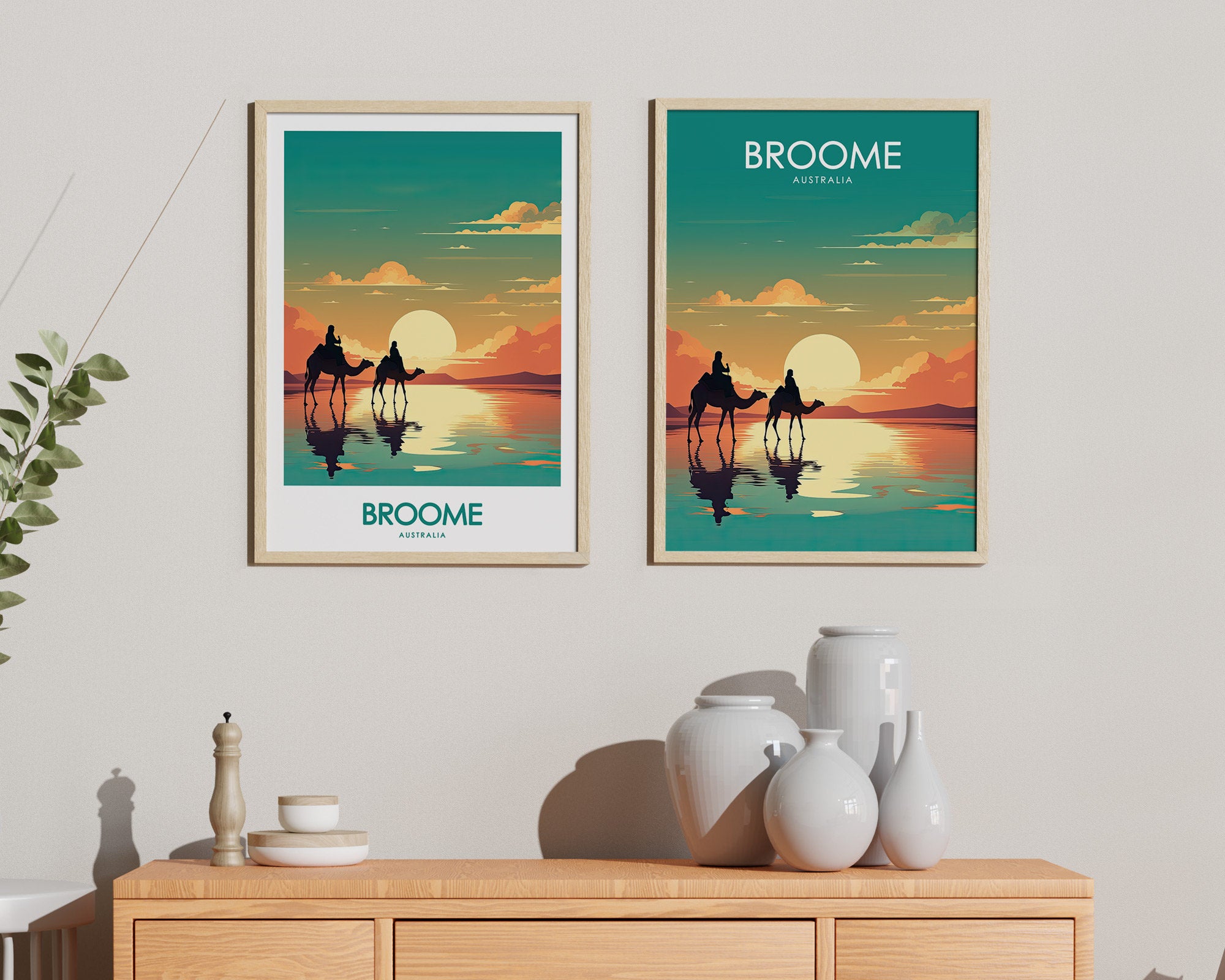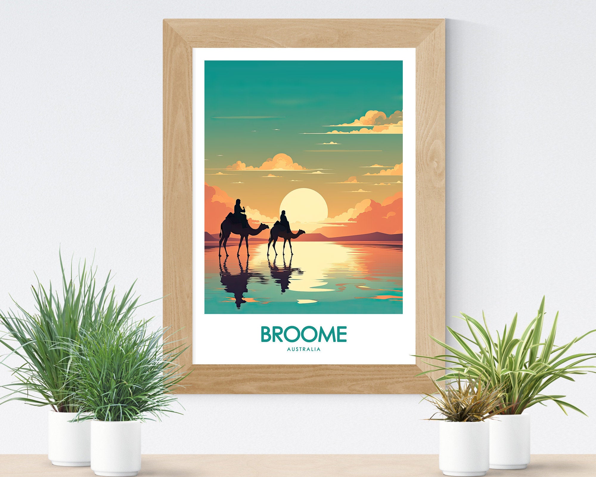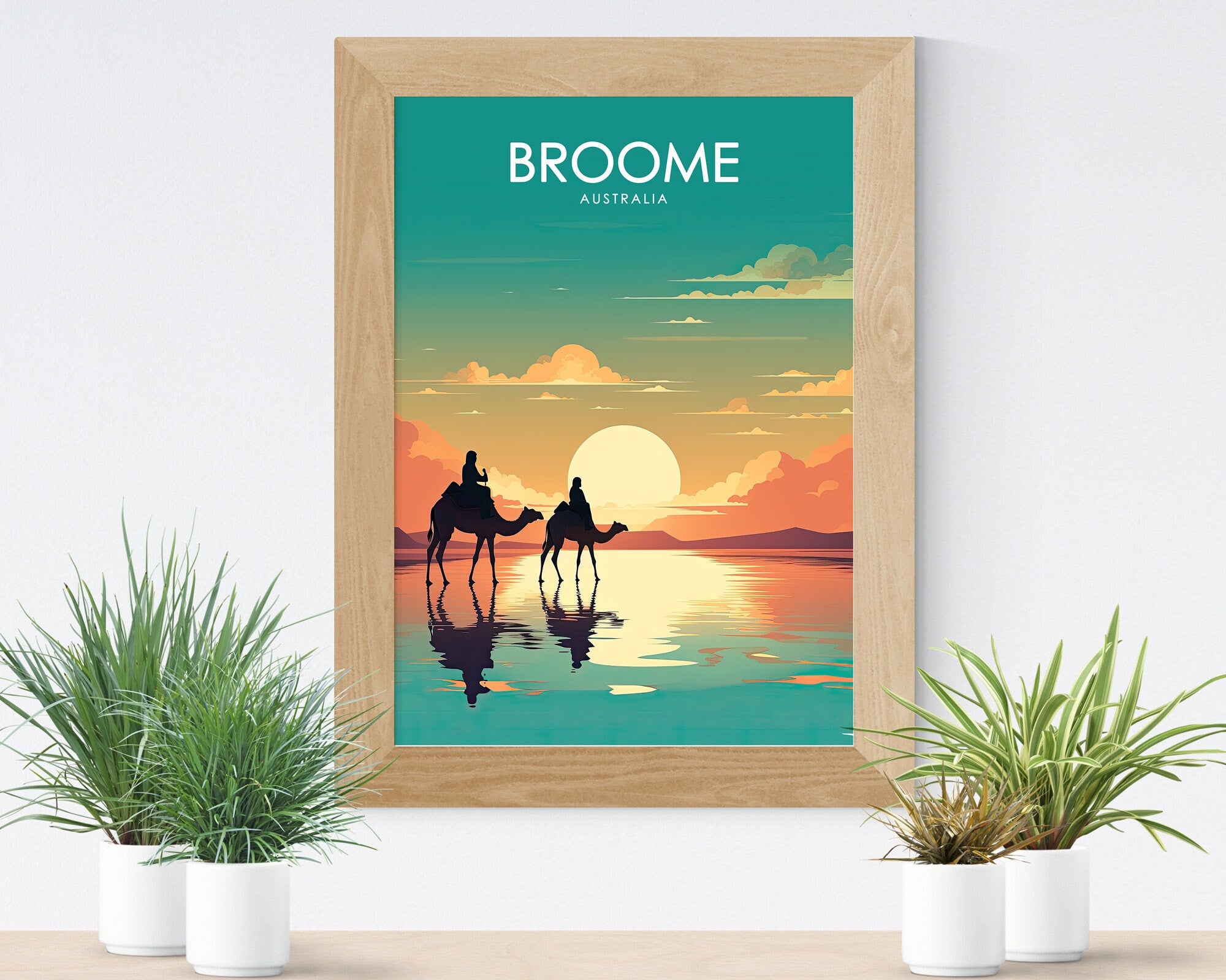 Discover the beauty of Broome, Australia with this stunning digital download travel poster! Featuring vibrant colors and a contemporary design, this eye-catching wall art is the perfect addition to any travel lover's home or office.